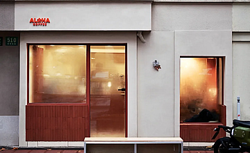 入口處的板巖壁爐坐塌設(shè)計,既打造出不影響用餐的等待區(qū),也作為臨時置物臺使用。室外的竹模混凝土材質(zhì)從視覺上連通室內(nèi)外空間。壁爐的火焰透過玻璃窗將室內(nèi)的溫暖傳遞給來往路人,引人入勝。通透的落地窗與坐塌地臺讓室外空間延伸到室內(nèi),增內(nèi)外加互動。我們希望店鋪的迎街面是松弛的、輕盈的,有私密性的。通過窗邊桌上升騰的鍋氣與玻璃上的水珠感受店內(nèi)的人氣。
